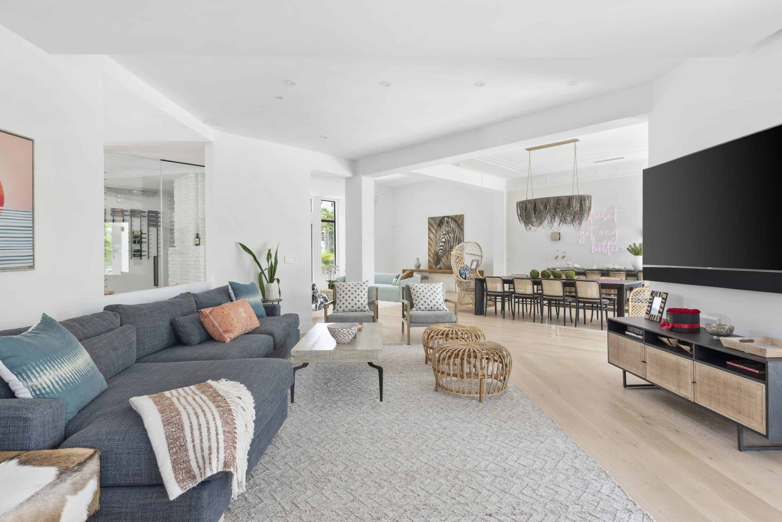 MIAMI BEACH DREAM HOME – 7,400 SF under A/C as per owner. Enjoy living just a moments’ walk away from the beach and boardwalk as well as many great restaurants at Faena, Edition, 1 Hotel, SoHo House and more. On a 25,850 sf lot with 235 ft of waterfrontage, and a tropical modern interior design, this home has it all. Featuring a large kitchen with walk-in-pantry and wet bar, family room, ground floor and second floor master suites, full gym equipped with Peloton treadmill and bicycle, 150 sf wine cellar, 1,500 sf roof deck with large summer kitchen, heated pool, playroom, 2 car garage, 150 ft long driveway and estate quality specimen trees and plantings. Smart home with Control4 complete system. 2801 Flamingo Dr offers the ideal sand, sun, and surf lifestyle.